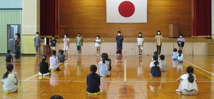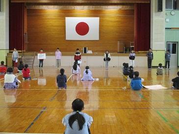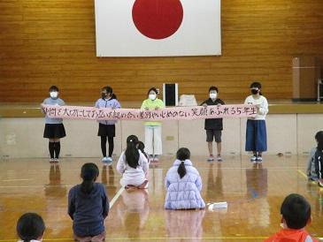 スローガン「学習してきたことを一生懸命笑顔で伝え、自信をもって世界に一つだけの発表会にしよう!」