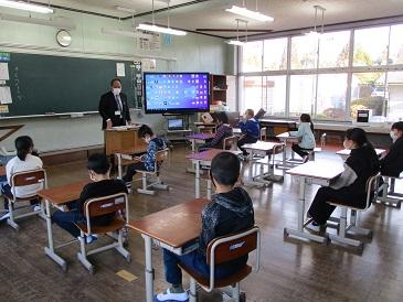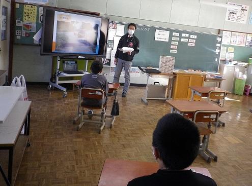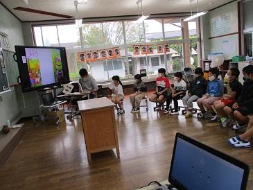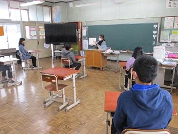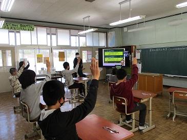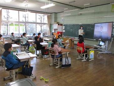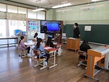 3年生以上の教室と県教育庁文化課をつないで、熊本地震被災文化財出前講座を行いました。