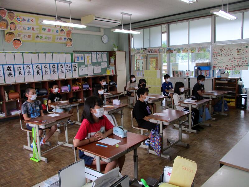 2学期の授業に向けて、支援員の先生が鉛筆や消しゴムが転がって落ちないための対策を取ってくださいました。1年生から4年生までの児童の机にガード用フィルムが貼られています。この日はちょうど夏休みの学習会がありましたので、その効果を実感できました。このような授業に集中できるような細かい心配りに感謝しています。