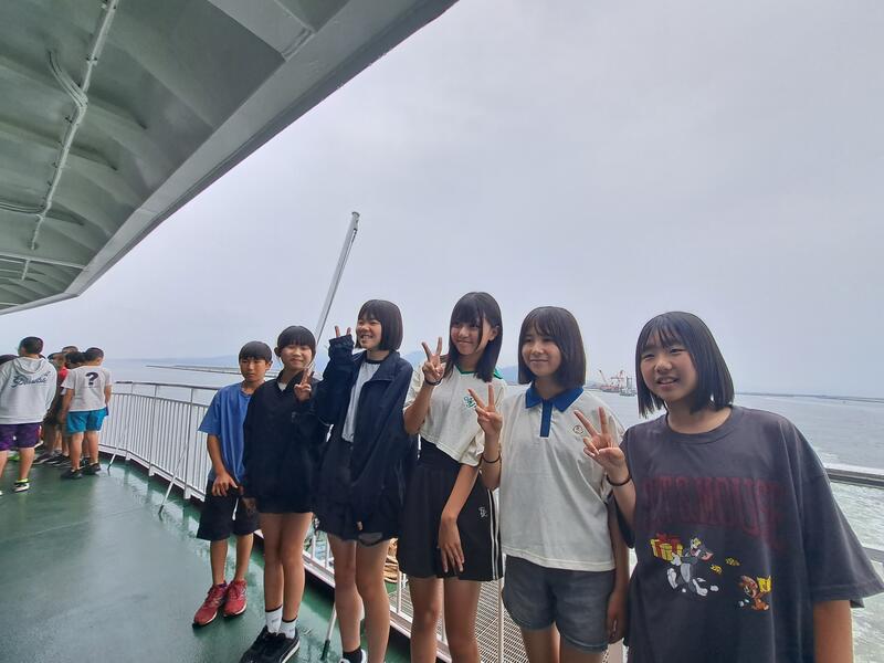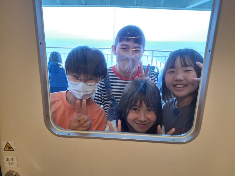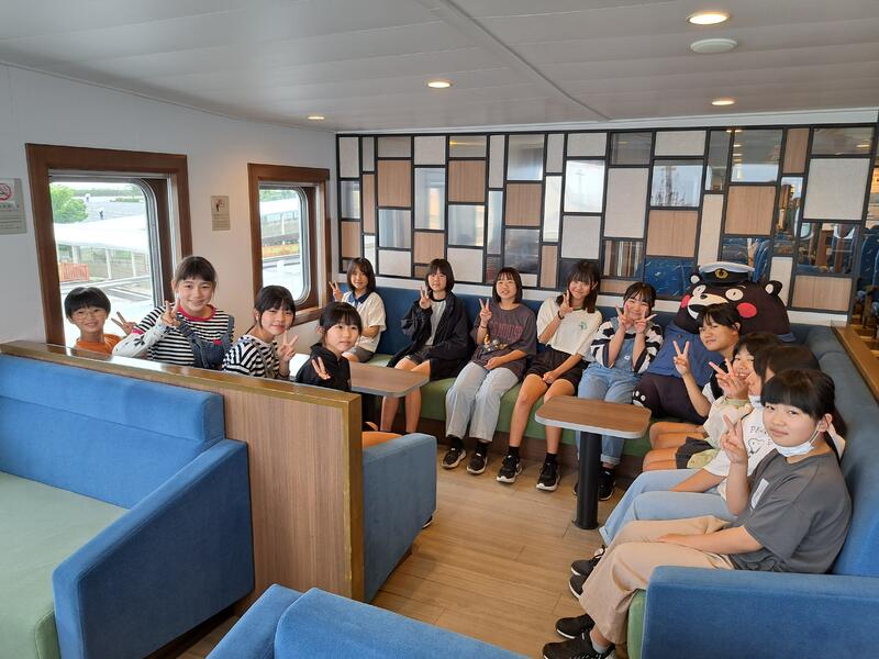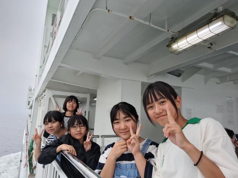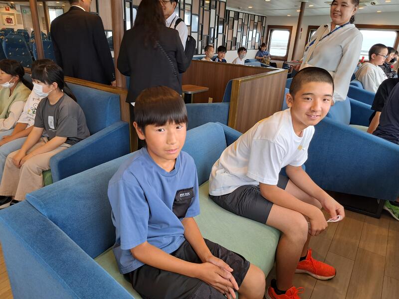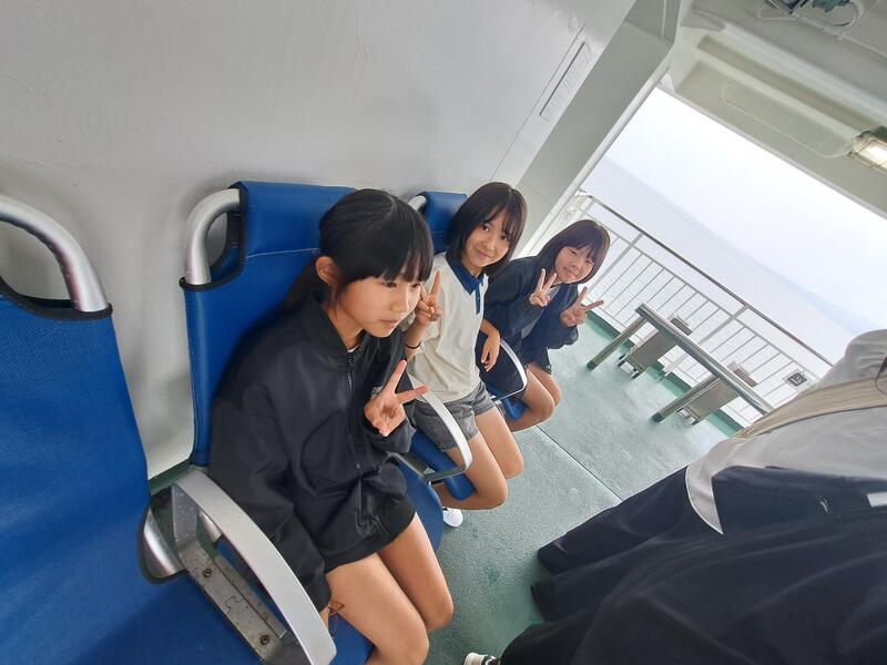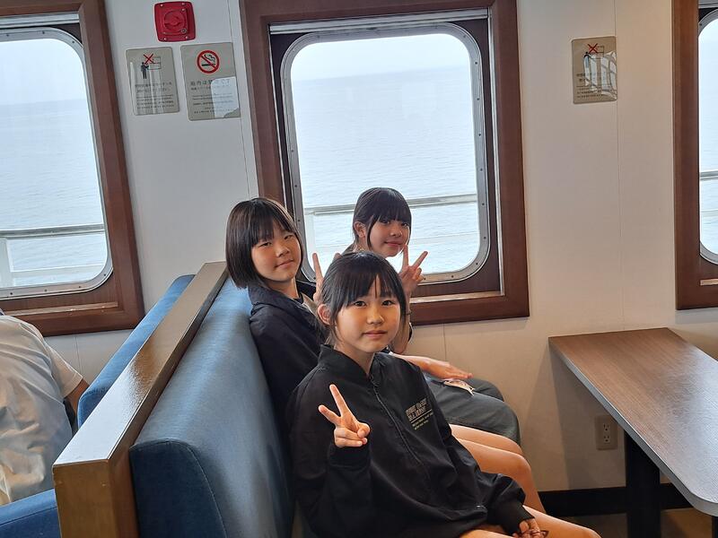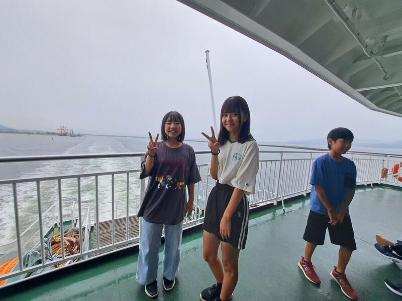 フェリーのなかを楽しみつつ、長崎への思いを膨らませています。