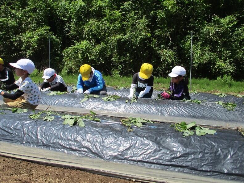 子供たちは、毎年この行事をとても楽しみにしています。つるさしを終えた子供たちの感想から、「土の10センチから15センチのところにつるをさすことが分かりました。」や「これからは、草むしりや水やりをがんばりたいです。」など充実した時間だったことが伝わってきました。『大きくなあれ、おいしくなあれ(^^♪)』