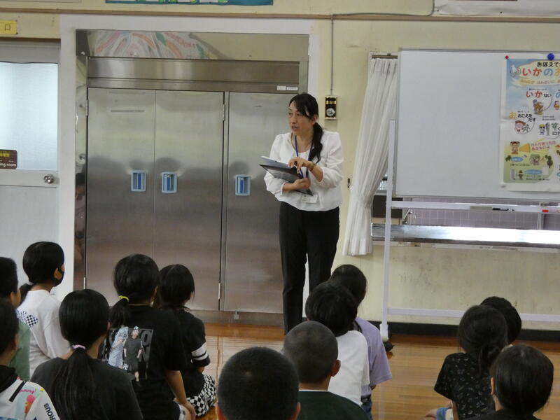 1月15日(月)から1月26日(金)まで、須恵小学校では給食旬間と定め、取組を行っています。その取組の中の一つ、「給食集会」を1月16日(火)の朝の活動の時間に行いました。給食委員会の子供たちが、全児童を対象に調査した「きらいな食べ物」についてのアンケートの結果や、「給食に携わる方々の思いと食べ物の栄養」について考えたことを発表しました。また、栄養教諭の小山先生に来ていただき、「給食の歴史」についてお話をしていただきました。全校児童で、給食について考える時間になりました。