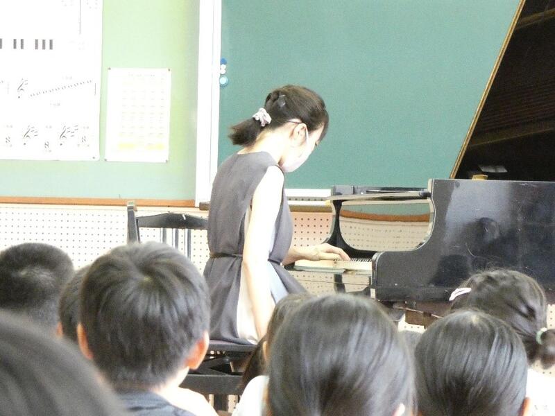 子どもたちは、1曲目ずつ様子を想像しながら、あじわって聴き入っていました。子どもたちの感想の中には、「月足さんの演奏を聴いて音楽が好きになりました。」「月足さんのように、支えてくださる人たちに感謝しながら生活していきたい。」というものがあり、感動する時間を過ごすことができました。
