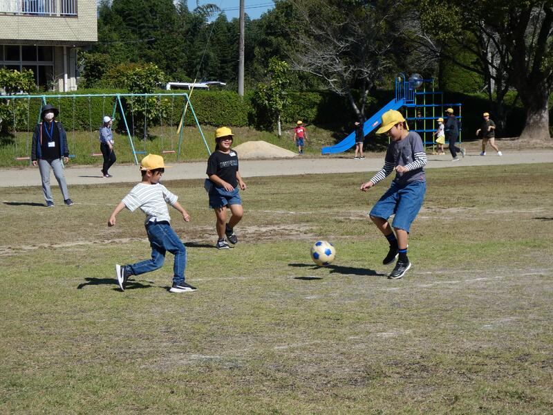 10月23日に縦割り班遊びを行いました。ドッジボール、サッカー、しっぽとり、バナナおになどをして遊び、たくさんの笑顔が見られました。天気も良く、どの縦割り班も元気いっぱいの声が運動場に響いていました。