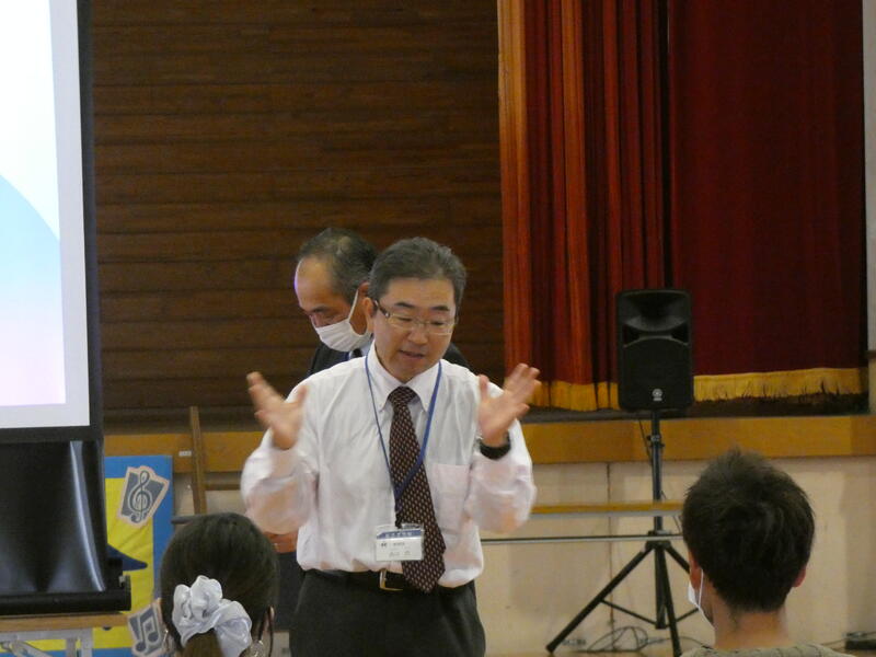 加登住校長からは、学校目標についてのアンケート結果をもとに、1学期の振り返りやこれからみんなでもっとよくなっていきたいことの話がありました。また、児童それぞれの将来の夢の紹介と、大谷翔平選手の実践を交えながら、夢の実現のためには、あいさつや思いやりの心など日頃から心掛けが大事だという話がありました。その他に、安全で健康的な夏休みにするために、各係からの話があり、子どもたちは真剣な表情で聞くいていました。