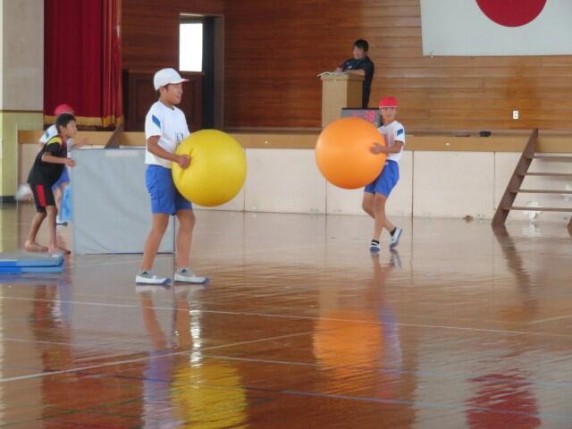 2回の試合を縦割り班で声をかけ合いながらドッジボールを楽しみました。感想発表では、「あてることはできなかったけど、みんなで楽しめました。」と3年生の児童が発表しました。みんなの笑顔がたくさん見ることができた全校レクリエーションでした。