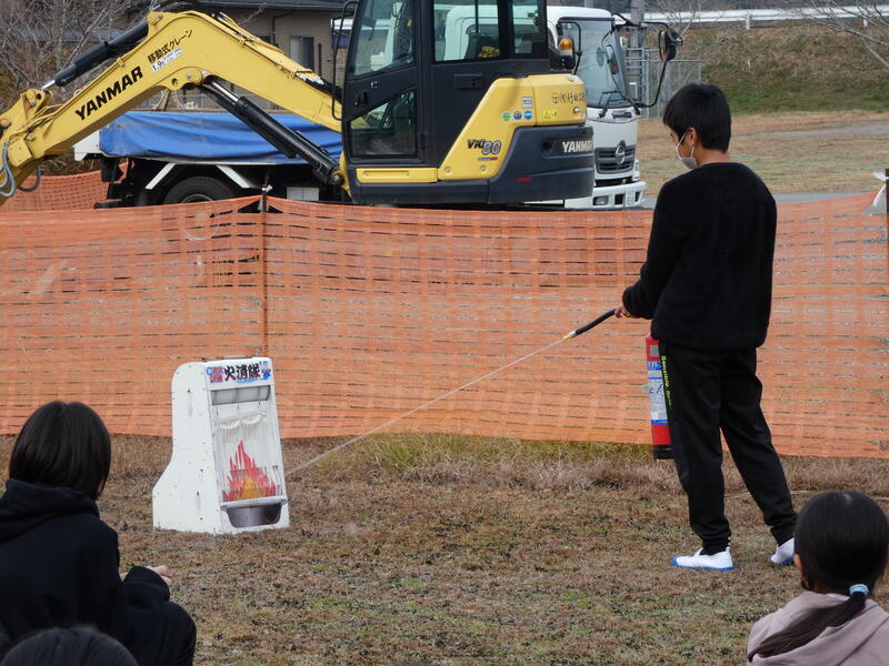 11月29日(水)に火災時の避難訓練を行いました。命を守るための「お・か・し・も」の合言葉を意識して訓練をしました。上球磨消防署の消防士の方々から、火事の時の行動や消火器の使い方を教えていただき、6年生の代表児童と職員が消火訓練を行いました。