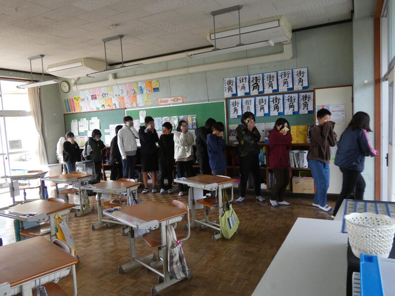 11月2日(木)にシェイクアウト訓練を実施しました。シェイクアウト訓練は、地震を想定したその場でできる防災訓練です。1分間の訓練で次の3つの安全確保行動を意識しました。