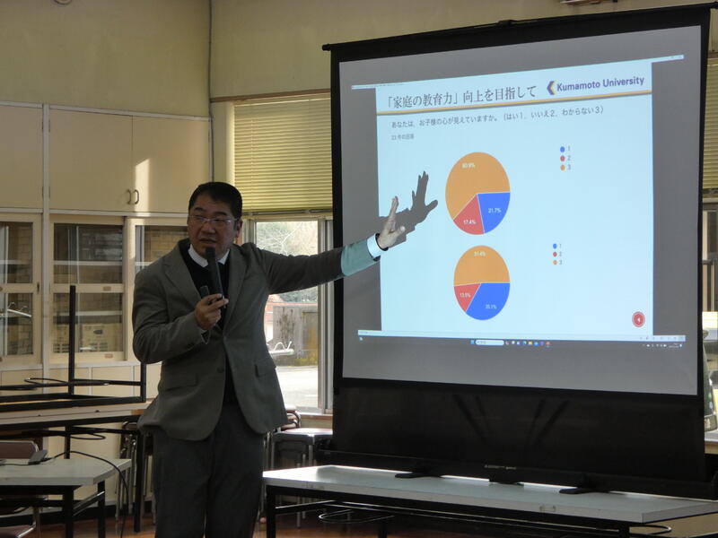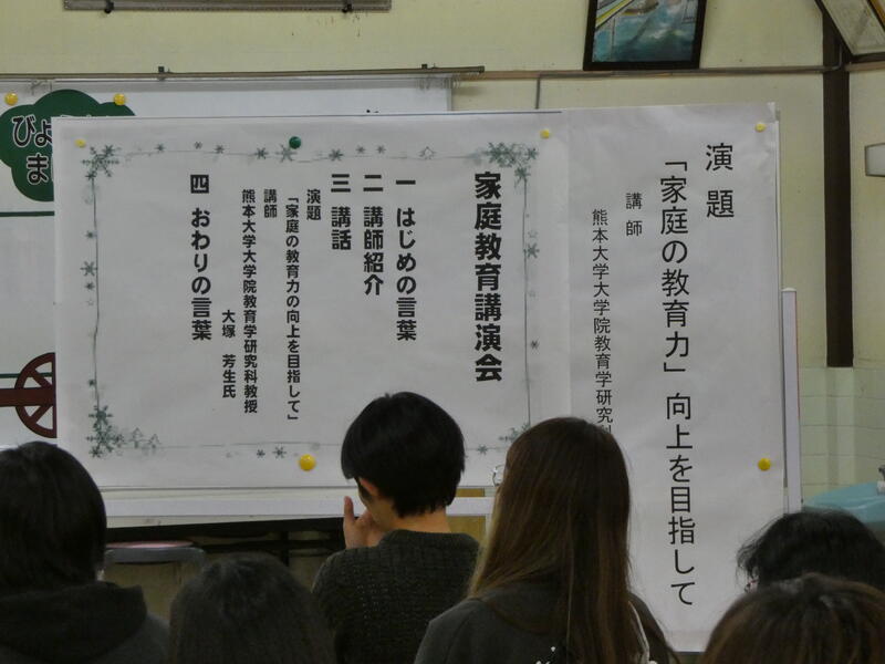 12月6日(水)あさぎり町家庭教育講演会が行われました。熊本大学大学院教育学研究科教授の大塚芳生先生の講話がありました。安全なネットの使い方や感情のコントロール方法など、動画や体験を取り入れながら説明いただき、よい学びになりました。