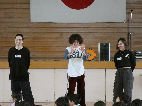 12月8日(金)は、いきいき芸術体験教室でした。「劇団きらら」さんをお迎えして、 低学年部・高学年部、それぞれ90分間のワークショップに参加しました。生の演劇を観たり、体験したりすることを通して、「伝える力」「感じる力」「想像力」を高めたり、豊かな情操を育んだりすることができました。躍動感満載のヒップホップのダンス後は、「自分もダンスを始めたい。」という思いをもった児童もいるようです。ミキティーさん、りーさん、れんさん、とのさん、ありがとうございました。