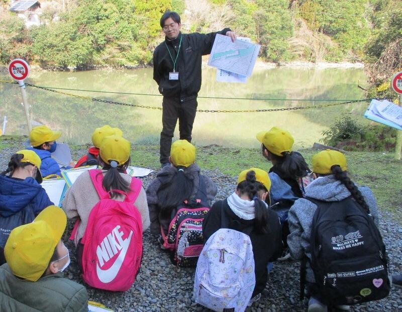 2月8日(木)に社会科見学で、幸野溝について学習しました。幸野ダムや用水トンネルの見学など貴重な体験ができました。子どもたちは、幸野溝のことや水土里ネットの仕事について質問したり、見学して気付いたことをメモしたりするなど、一生懸命学んでいました。水土里ネットの方から説明をしてもらい、仕事の内容を知ったことで、「食べ物に関わるたくさんの方に感謝して食べたい。」などの感想を持つことができました。