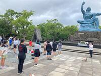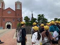 長崎原爆資料館見学、被爆体験講話の後は、フィールドワークをしました。フィールドワークでは、浦上天守堂、如己堂など様々なところを、歩いて移動し、見学することができました。その後、平和公園で平和集会をしました。