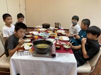 到着後、すぐに入浴し、夕食を食べました。夕食も、カレー、ちゃんぽん、唐揚げ、シュークリームとたくさんのごちそうに大満足の子どもたちでした。