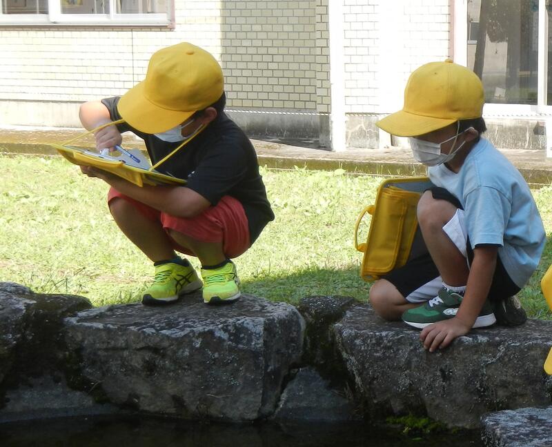 天気の良かった9月29日木曜日の午後、生き物を探しに校庭や中庭に行きました。中庭の池周辺では、オタマジャクシやゲンゴロウが見つかりました。校庭では、オレンジ色の蝶が見つかりました。蝶の名前が分からなかったので、金曜日に図鑑で調べようと約束しました。観察したことは、みんなに発表しました。