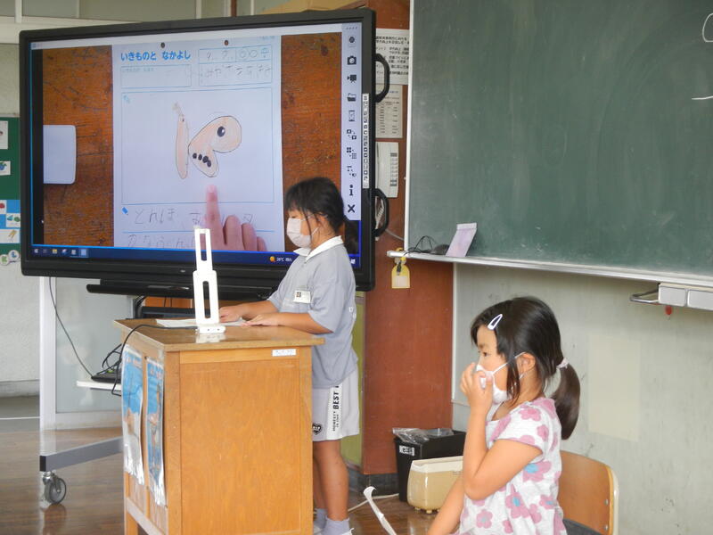 3年生の総合的な学習の時間で「昔と今の須恵小学校」の学習をしています。それに伴い伊津野幸一さんをゲストティーチャーでお招きし、昔の須恵小学校について、子供達が、「知りたい、教えてほしい」ことを伊津野さんに質問していきました。昔の須恵小には、飼育小屋があり、インコなどの動物が飼われていたことや、プール学習は球磨川まで行って高学年が低学年に泳ぎ方を教えていたこと、給食では、脱脂粉乳が牛乳の代わりをしていたこと、田んぼからの水を落水すると、用水路のざるには小ぶな等の魚がたくさん捕れたことなど、子共の興味・関心が益々高くなるよう工夫して伝えてくださいました。伊津野さんには、ご多用中にも関わらず、本当にありがとうございました。お世話になりました。この時間に学んだことを、かべ新聞にまとめ、ふり返りをしていきます。