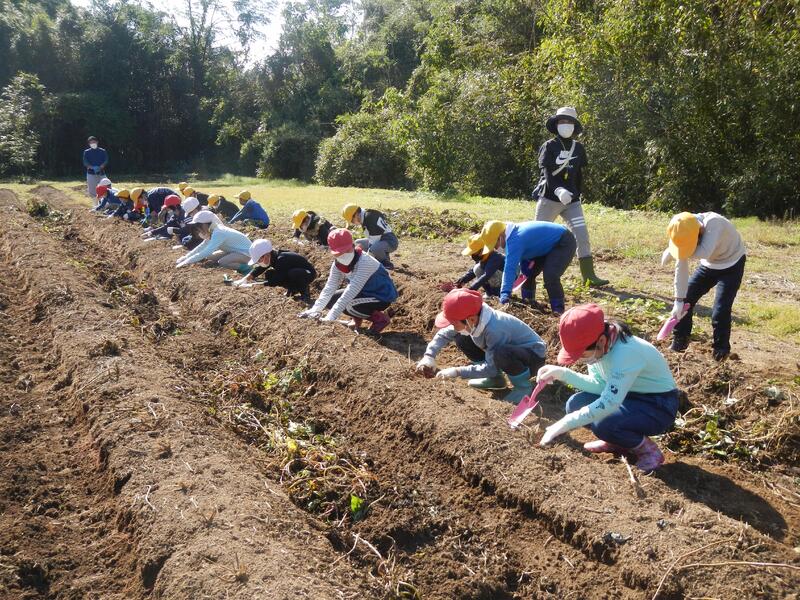 10月13日(木)晴天に恵まれ、1年生から3年生まで、たくさんの大きな芋を収穫することができました。収穫を通して、喜びを味わったり、秋の実りを実感したりすることもできました。子供たちにとっては、大好きな芋ほり。一生懸命土をほって、つるや芋を傷つけないようにしている姿がとても印象的でした。また、西様をはじめJA青壮年部の方々や西様には、たくさんのご支援をいただきました。本当にありがとうございました。お世話になりました。