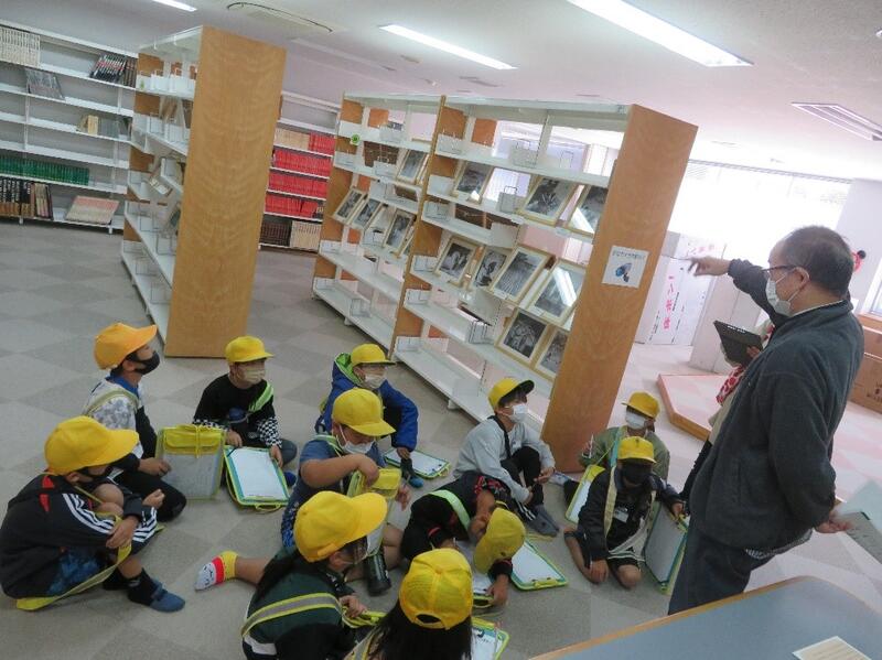 25日(火)は、文化ホールと郵便局へ行きました。文化ホールでは、工事中の大ホールをのぞかせていただいたり、エンブリー博士資料室で写真を見させていただいたりしました。災害時のベッドなども保管してあり、自分たちの生活とのつながりに気付いたようでした。