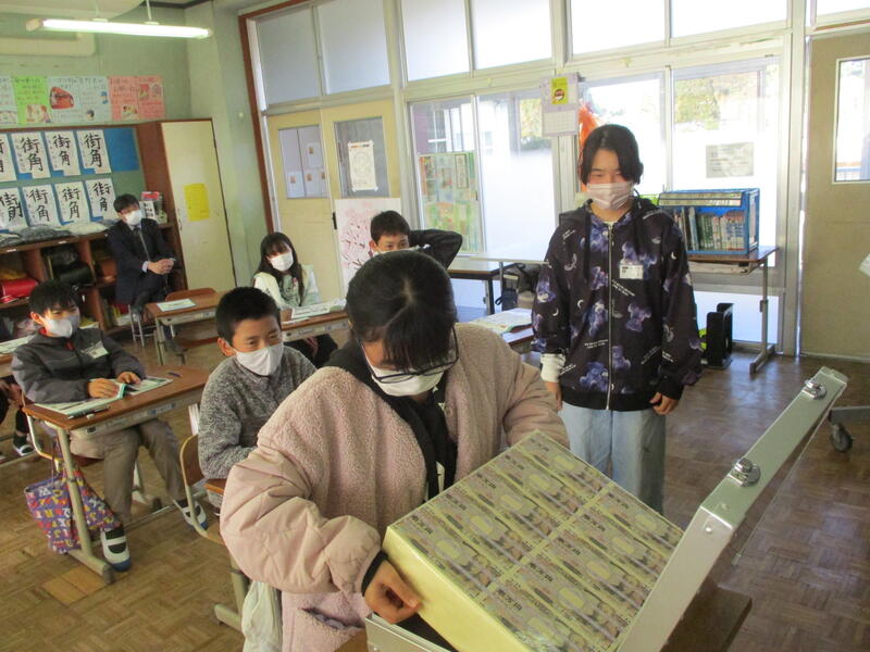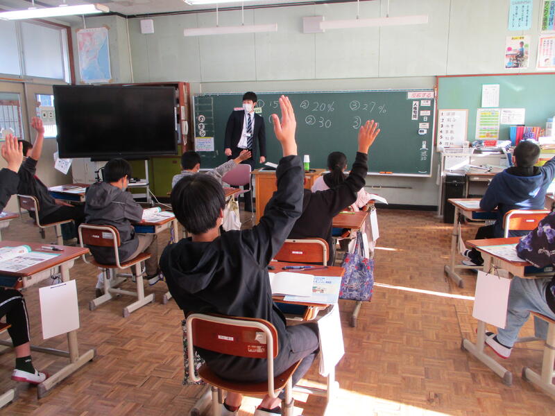 12月13日(火)、6年生の租税教室を行いました。人吉税務署の方に「わたしたちのくらしと税」について、クイズなどを交えて分かりやすくお話していただきました。わたしたちの身近な物や施設等でどのように税が使われているのか、税がなかったらどんな社会になるのか、1億円を体感しようなど興味深い内容ばかりでした。6年生は、1学期の社会で税について学習しましたが、今回の学習でより詳しく学ぶことができました。わたしたちのくらしを豊かに安全にするために必要な税金。それが使われているみんなで使うものや建物などを、これからもっと大切にしていくことを意識して生活できると思います。
