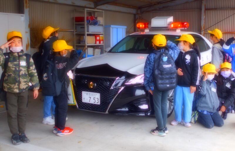 警察署見学で多良木警察署と消防署見学で上球磨消防署へ、社会科見学に行くことができました。
