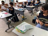 天気の良かった9月29日木曜日の午後、生き物を探しに校庭や中庭に行きました。中庭の池周辺では、オタマジャクシやゲンゴロウが見つかりました。校庭では、オレンジ色の蝶が見つかりました。蝶の名前が分からなかったので、金曜日に図鑑で調べようと約束しました。観察したことは、みんなに発表しました。