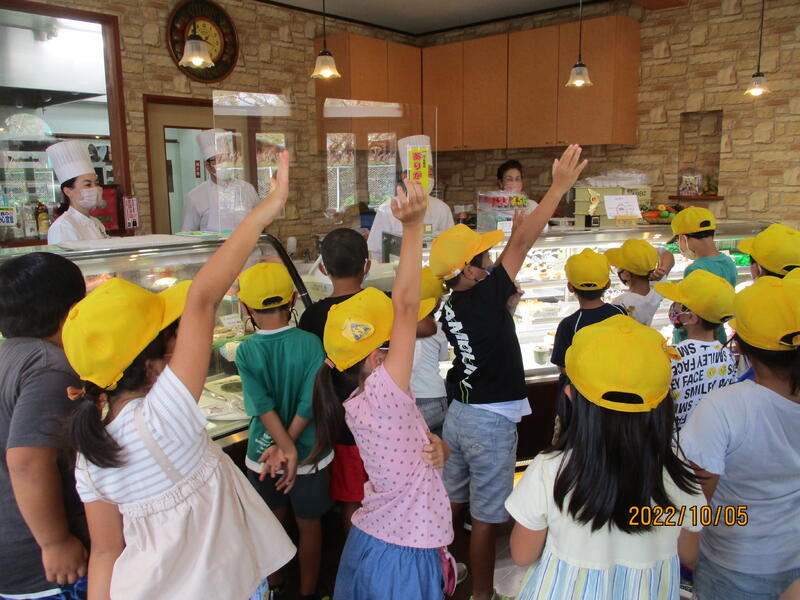午後は、菓子工房KANEKOさんに行きました。お店に入ると、色とりどりのケーキが並んだショーケースに子どもたちは釘付けでした。質問タイムでも、ケーキの作り方が気になるようで、時間が足りないほど質問の手が挙がりました。