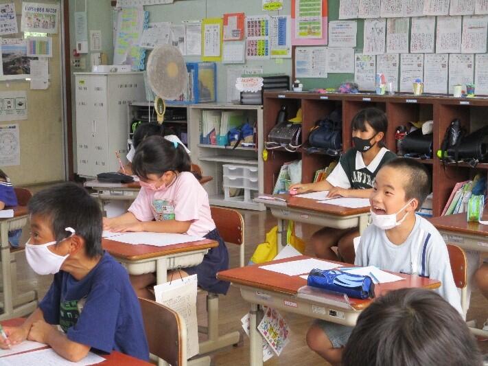 3年生の総合的な学習の時間で「昔と今の須恵小学校」の学習をしています。それに伴い伊津野幸一さんをゲストティーチャーでお招きし、昔の須恵小学校について、子供達が、「知りたい、教えてほしい」ことを伊津野さんに質問していきました。昔の須恵小には、飼育小屋があり、インコなどの動物が飼われていたことや、プール学習は球磨川まで行って高学年が低学年に泳ぎ方を教えていたこと、給食では、脱脂粉乳が牛乳の代わりをしていたこと、田んぼからの水を落水すると、用水路のざるには小ぶな等の魚がたくさん捕れたことなど、子共の興味・関心が益々高くなるよう工夫して伝えてくださいました。伊津野さんには、ご多用中にも関わらず、本当にありがとうございました。お世話になりました。この時間に学んだことを、かべ新聞にまとめ、ふり返りをしていきます。