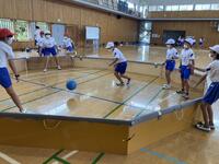 昼食後、午後からは、ニュースポーツをしました。活動班対抗で、ペタンク、シャッフルボード、ガガという3種類のニュースポーツをしました。