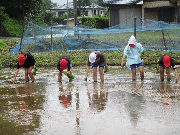 6月13日(月)に稲作体験の一環で田植えを行いました。JA青壮年部の方々のご協力のもと、4・5・6年生が取り組みました。普段は入ることのない田んぼの感触を楽しみながらも、真剣な表情で植えている姿が見られました。頑張って植えた苗がしっかりと根付き、秋にはたわわに実ることを楽しみにしています。それまでしっかりと生育を観察していきたいと思います。