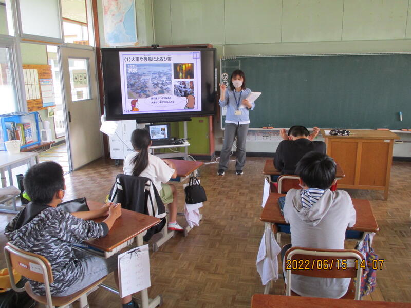 6月15日(木)に大雨時の避難訓練を行いました。避難する前に、各学級で「災害から身を守るために」について防災学習をしました。災害が起きたときに、何が危険でどのようにしたら命を守れるのかを、真剣に学習できました。