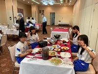 到着後、すぐに入浴し、夕食を食べました。夕食も、カレー、ちゃんぽん、唐揚げ、シュークリームとたくさんのごちそうに大満足の子どもたちでした。