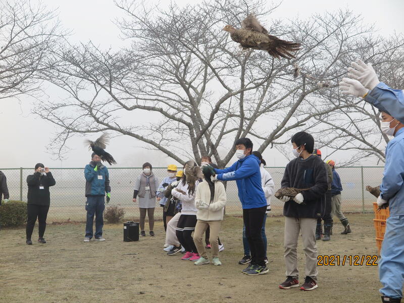 12月22日(水)に、南稜高校の生徒さんや地域の方々と一緒に、50羽のキジを放鳥しました。キジを間近で見た子供たちは、キジの大きさやぬくもり、羽ばたくときの羽音の大きさなど、初めての経験に驚くことが多かったようです。子供たちがこの取組をとおして、地域の自然や生物と親しみ、自然に恵まれた郷土のよさを感じとってほしいと思います。