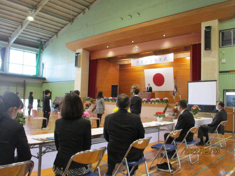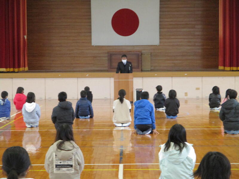 12月24日(金)令和3年度第2学期終業式が行われました。校長先生や生徒指導担当の先生、養護の先生から、2学期の振り返りや冬休みの安全で健康的な生活についてお話がありました。そして、各学年の代表が、2学期がんばったことや3学期の目標の発表がありました。3学期の始業式は1月11日です。60名の子供たちの元気な笑顔を待っています。