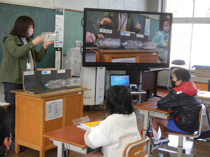 3年生「ロボットハートンのぎもん」赤いかさ、力持ち、花、ぬいぐるみ…女の子らしいか男の子らしいかというクイズから、「当たり前」だと思っていたことは「正しい」のか?と考えたことを発表しました。