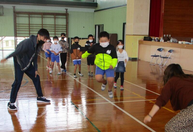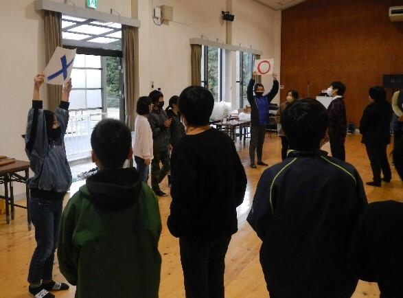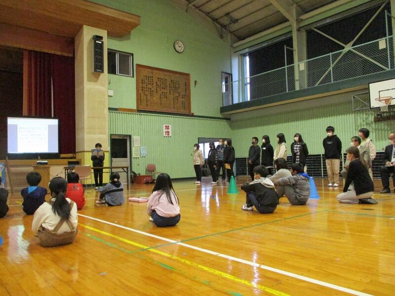 進行役やレクリエーションの係を子どもたちが担い、「だるまさんがころんだ」「〇×クイズ」などをしました。始めは活発ではなかったものの、少しずつ話しかけたり鬼の役を交代したりして、関わる姿が見られました。