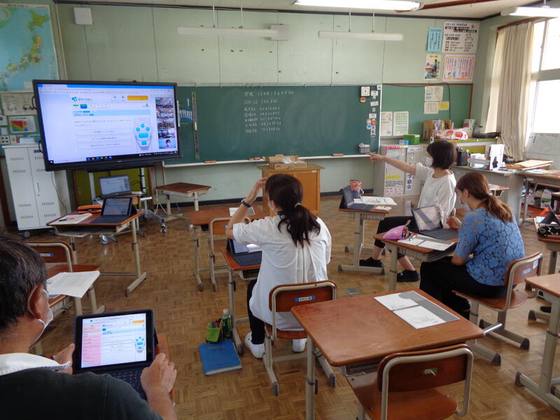 夏休みの研修の一つとして、タブレットパソコンを使った職員研修を行いました。主に、ロイロノートを授業の中でどのように活用したらよいかを、ICT支援員の先生に教えてもらったり、職員同士でアイデアを出し合ったりしました。1学期までに実践した取組を職員室に掲示して、職員同士でアイデアの共有を始めました。2学期に向けて、ICTを活用したよりよい授業を今後も学んでいこうと思います。