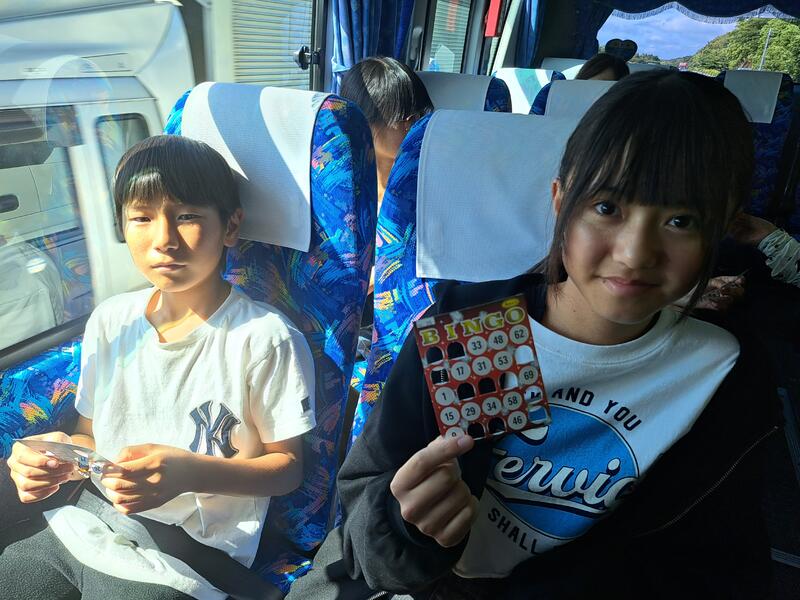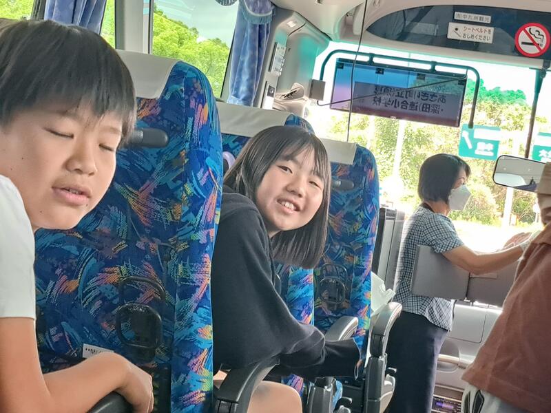 学校に到着しました。お迎えにきてくださったおうちの方にただいまと、旅行の感想を伝えました。今から家に帰ります。
