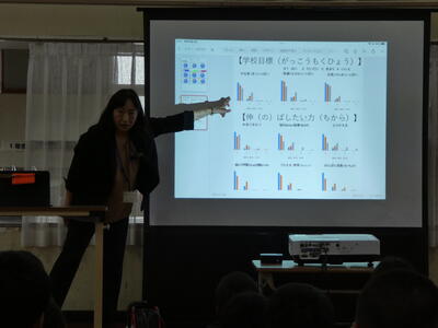 始業式では、校長先生から「伸ばしたい力」についての話がありました。「意識すると、めあてはきちんと達成に近づく」ことや、「自信をもって学習や活動にとりんでほしい」ことについての話でした。