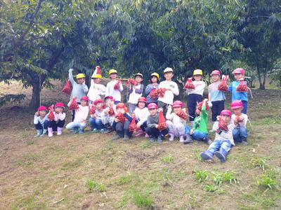 今年も松尾地区の遠山さんの栗畑で栗拾い体験をさせていただきました。子供たちは、イガの中の大きな栗を見つけて「3つ入っている。」「大き~い」と言いながら喜んで拾っていました。最後は、イガで風船わりをして大盛り上がりでした。