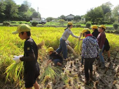 10月10日(木)にJA青壮年部の方々のご協力の下、 芋掘りと稲刈りをしました。