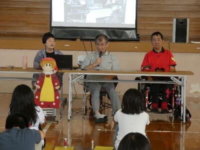 10月16日(水)の3・4校時、熊本県が主催する「 水俣病関連情報発信事業」がありました。これは、 水俣病被害者や水俣病の教訓等に関する理解を深め、 児童の水俣病学習の成果が定着するようにという目的で行われてい ます。
