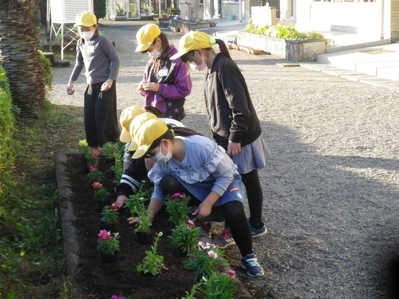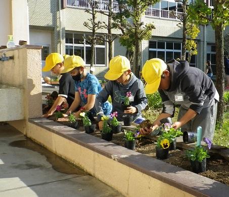春の花を、花だんや自分の鉢に植えました。