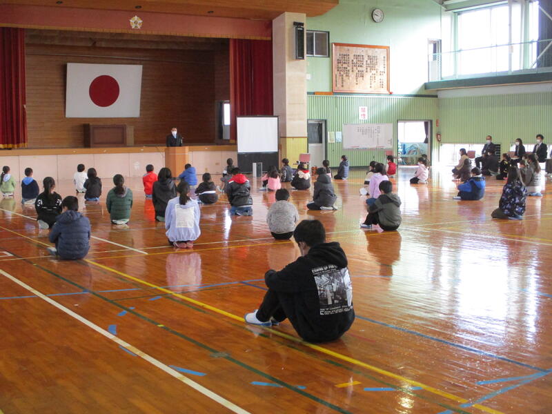 12月24日(金)令和3年度第2学期終業式が行われました。校長先生や生徒指導担当の先生、養護の先生から、2学期の振り返りや冬休みの安全で健康的な生活についてお話がありました。そして、各学年の代表が、2学期がんばったことや3学期の目標の発表がありました。3学期の始業式は1月11日です。60名の子供たちの元気な笑顔を待っています。