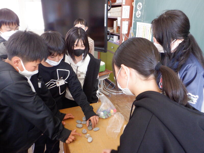 レイチェル先生から、レイチェル先生の故郷であるアリゾナ州ユマでの出来事が書かれている絵本『すてきな子どもたち』を紹介されました。その後、絵本に出てきた石に絵を付けていきました。石はレイチェル先生がアメリカから取り寄せていただきました。石には、あさぎりや熊本、日本をイメージする絵を描きました。子供たちが描いた石は、レイチェル先生が持って帰られますので、アメリカで須恵小のことを思い出してほしいと思います。