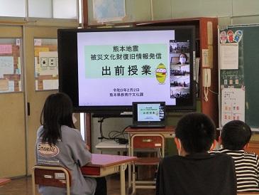 3年生以上の教室と県教育庁文化課をつないで、熊本地震被災文化財出前講座を行いました。