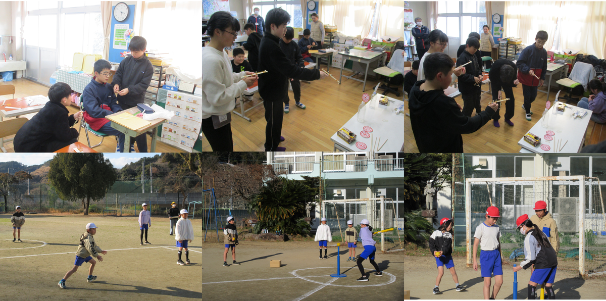 1月23日(金)の6時間目に、4・5・6年生のクラブ活動がありました。プレイクラブは運動場でTボールをしました。打ったり取ったりとチームで声をかけ合いながら試合を進めていました。天気も良く、とても楽しそうに活動していました。物づくりクラブは、昔懐かしゴムでっぽうづくりをしていました。友達に作り方やうまく飛ぶやり方を聞きながら仲良く作業を進めていました。勢いよく飛んで、見事に的に当たるととても喜んでいました。