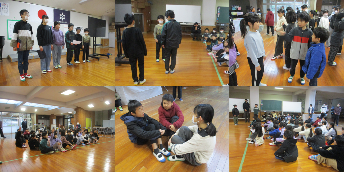 1月28日(水)の児童集会では、げん気委員会の発表がありました。まず、教室や部屋でできる遊びとして、「忍び足ゲーム」と「目をつぶってここまでおいでゲーム」を紹介してくれました。その後みんなでやってみると、とても盛り上がっていました。次に、食べ物の栄養についての話とクイズがあり、答えが合っていると「やった!」と嬉しそうでした。感想では、「ブロッコリーやレモンがビタミンCが多いと分かったので食べるようにしたい」「教室であまり遊んでいないので、今日教えてもらった遊びをやってみたい」などがありました。寒くなって、活動が控えめになったり、風邪をひきやすくなったりする季節なので、今日の話はとてもタイムリーでした。
