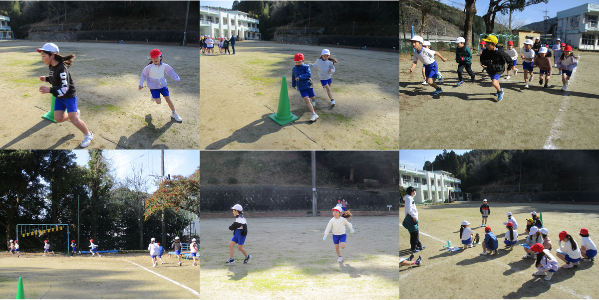 2月19日(木)の持久走大会に向けて、いよいよ持久走の練習が始まりました。低学年は、3分で何m走ることができたかを計測します。軽く走って体を慣らした後、実際に周回コースを走りました。初めは勢いよく飛び出しましたが、途中少し疲れてしまった子もいたようです。でも、最後まで頑張って走り、「600m走れた」「590mだった」と嬉しそうに伝えてくれました。最後に、「増えおに」遊びや振り返りをして充実した体育の学習ができました。