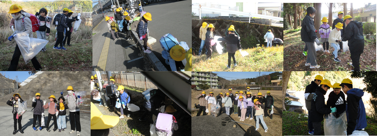 1月29日(水)の水東タイムでは地域ボランティアを行いました。第1回目が雨のため体育館清掃になったので、今回は天気も良く実施できてよかったです。A:大迫、B:新水俣駅、C:団地公園、D:初野神社の4チームに分かれてゴミ拾いをしました。通学路や用水路、公園の芝生、駅周辺、落ち葉のところなど一生懸命ゴミを探す姿が見られました。結構、ゴミがあったそうで、地域がきれいになってよかったです。