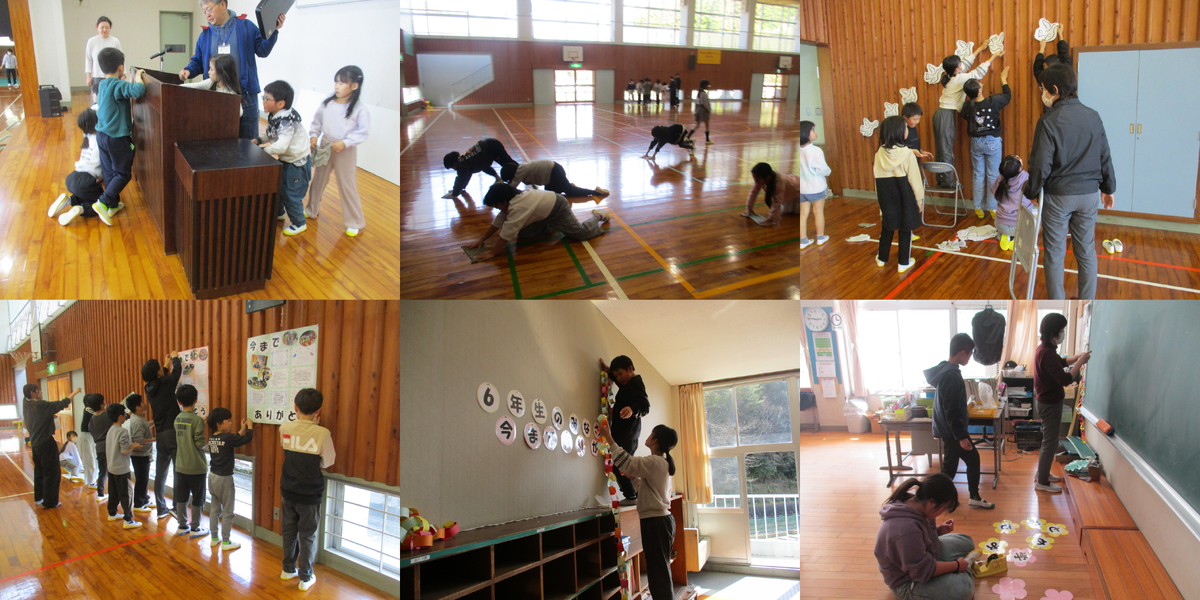 3月19日(木)の午後からは1年生から5年生で卒業式の準備をしました。みんな張り切って掃除をしてくれました。先生方から頼まれると、「はい」と気持ちよく引き受け、進んで頑張っていました。体育館も6年教室、こすもす学級もとってもきれいに飾り付けができました。きっと、6年生も卒業式に見て喜ぶと思います。下級生のみなさん、ありがとうございました。