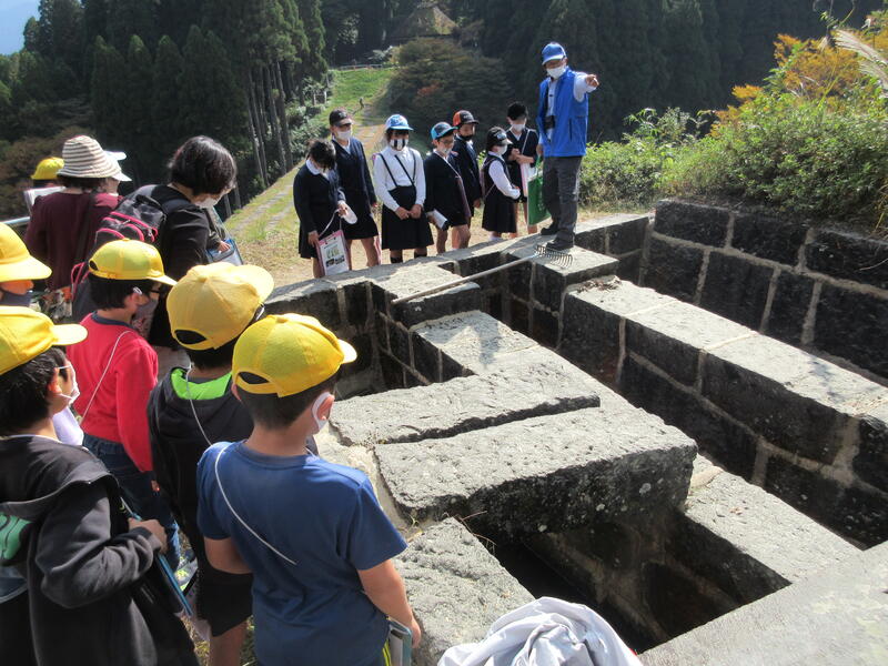 「石匠館」では、通潤橋がどのようにしてできたのかということや布田保之助さん・種山石工の橋本勘五郎さんについて、館長さんからパネルや模型を用いて分かりやすく説明していただきました。重い石を運ぶ工夫やアーチ型の橋の構造を体験を通して学ぶことができ、子どもたちはとても楽しそうでした。